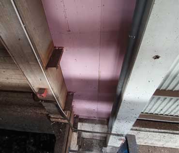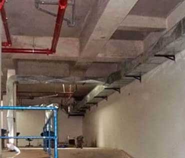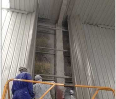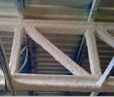 Aplicacion de mortero de Lana de Roca sobre estructura metalica.